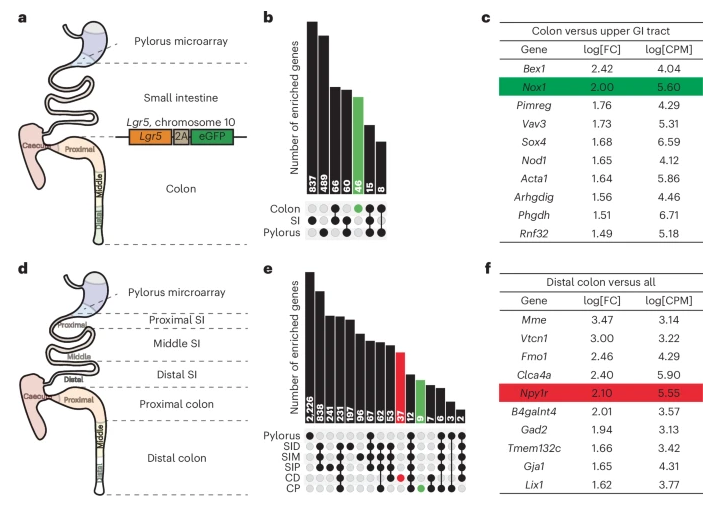 NOX1和NPY1R在结肠LGR5+细胞中富集表达