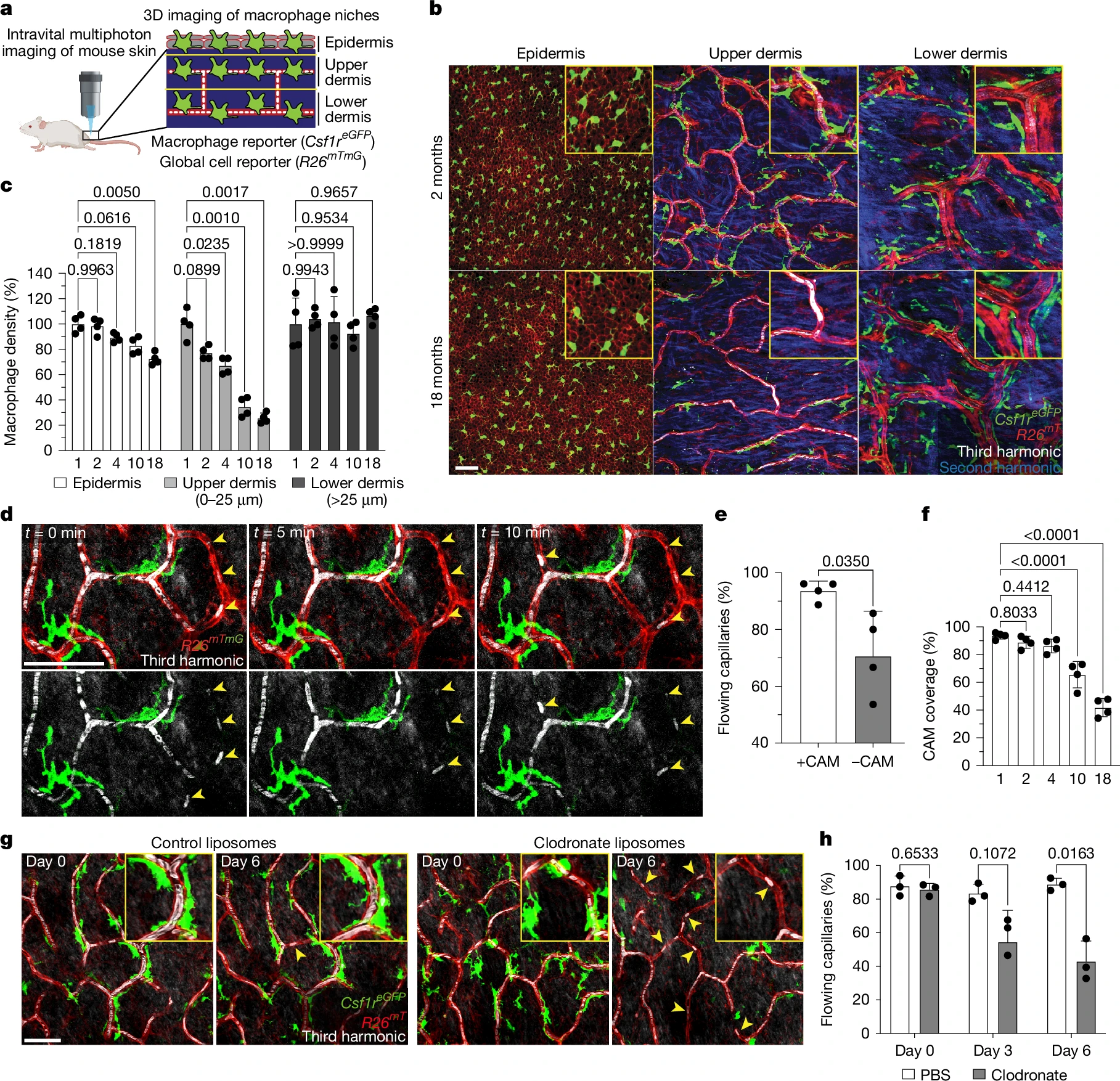 与年龄相关的生境特异性巨噬细胞缺失与皮肤毛细血管血流受损相关