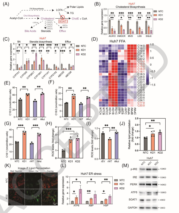 图3. 靶向胆固醇酰基转移酶1(SOAT1)可重编程脂质代谢