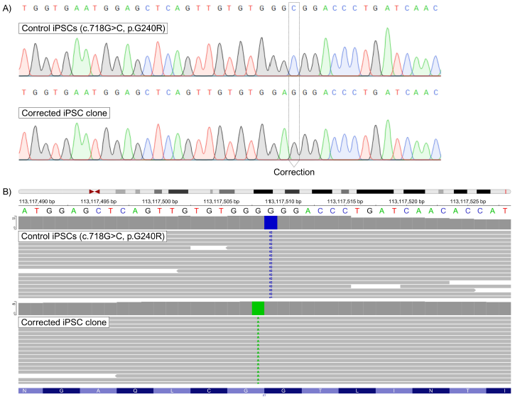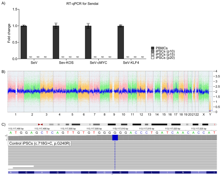 图1:携带c.718G C(p.G240R)突变的患者来源诱导多能干细胞遗传特征