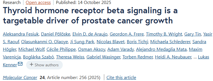 - Mol Cancer:阻断甲状腺激素受体为前列腺癌治疗提供了新的途径 (2025-10-26)