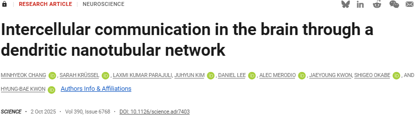 - Science:在大脑中发现了一种新的树突纳米管网络 (2025-10-27)