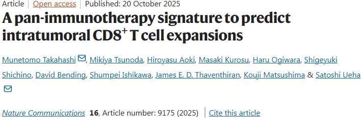 - Nat Commun:利用特征性基因预测癌症免疫治疗中的T细胞扩增 (2025-10-27)