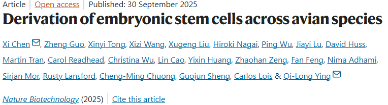 - Nat BIotechnol:新研究证实蛋黄对建立真正的鸟类胚胎干细胞至关重要 (2025-10-28)