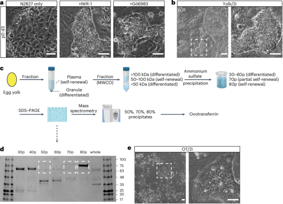 对蛋黄的仔细研究发现,它确实含有一种蛋白质 卵转铁蛋白,这种蛋白质完善了他们的"鸡尾酒"培养基,使他们能够从几个鸡品种中提取并维持胚胎干细胞。