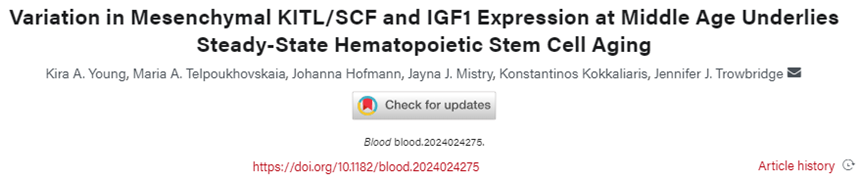 这是有原因的:因为造血干细胞非常稀少,科学家们员通常把所有这些干细胞集中在一起,进行综合研究。在一项新的研究中,Trowbridge及其同事对9只基因相同的中年小鼠的造血干细胞进行了单细胞水平的研究,首次近距离观察了骨髓微环境的微妙变化如何使不同小鼠的造血干细胞衰老。相关研究结果近期发表在Blood期刊上,论文标题为 Variation in Mesenchymal KITL/SCF and IGF1 Expression at Middle Age Underlies Steady-State Hematopoietic Stem Cell Aging 。