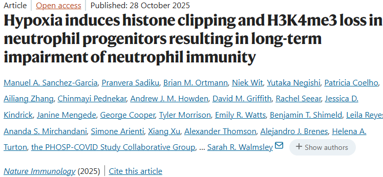 最新发表在《自然・免疫学》的研究给出了答案:缺氧不仅是发病时的 呼吸危机 ,还会给免疫系统留下 长期后遗症 它会瞄准骨髓里产生中性粒细胞的前体细胞,通过 组蛋白剪切 破坏基因调控,让成熟的中性粒细胞 战斗力锐减 ,哪怕氧气恢复正常,这种免疫缺陷也能持续 3-6 个月,甚至更久。更让人看到希望的是,研究还发现 BCG 疫苗或许能部分修复这种损伤,为改善长期免疫障碍提供了新方向。